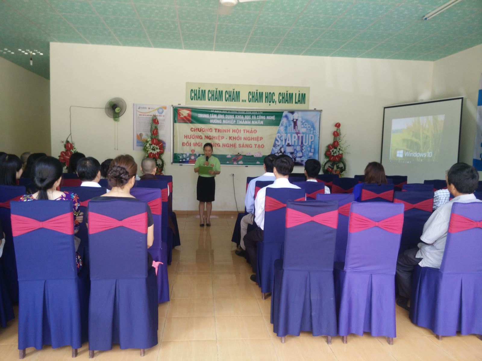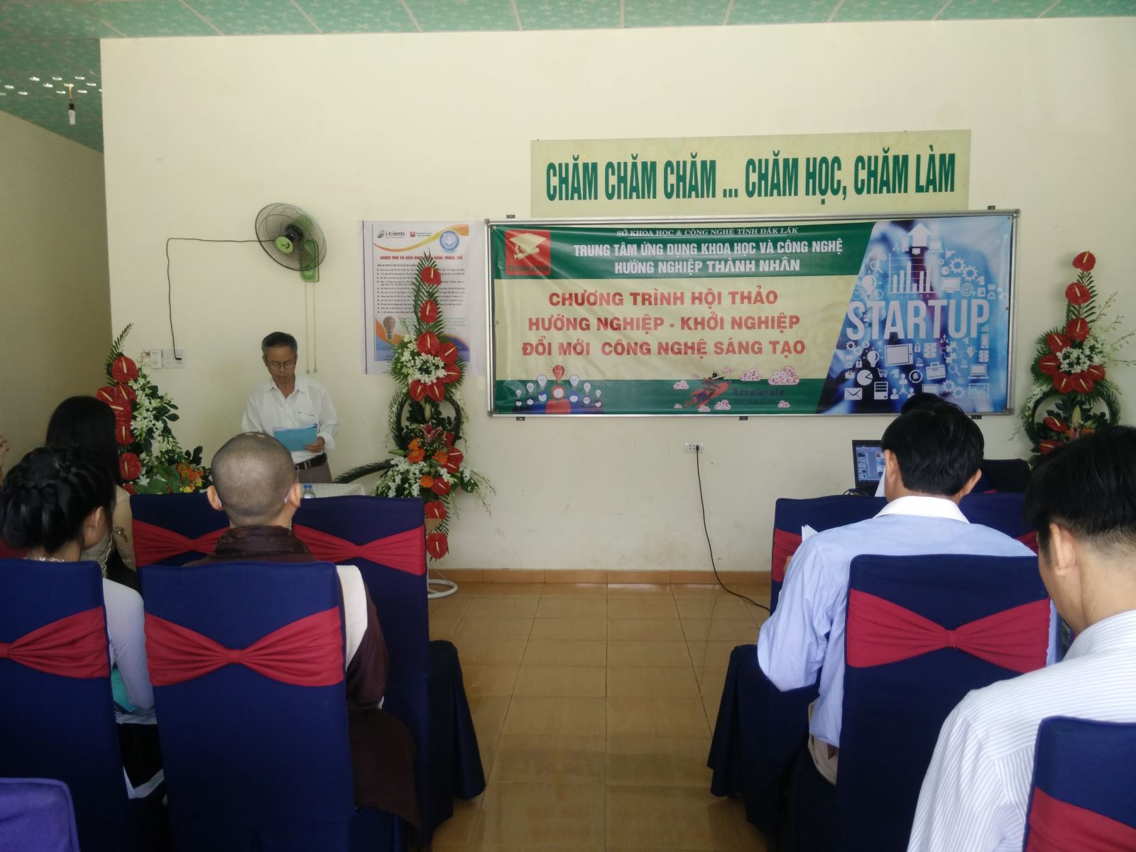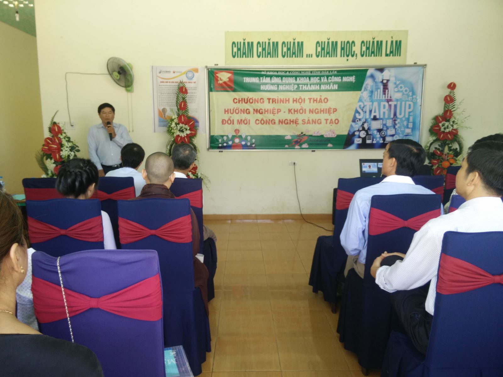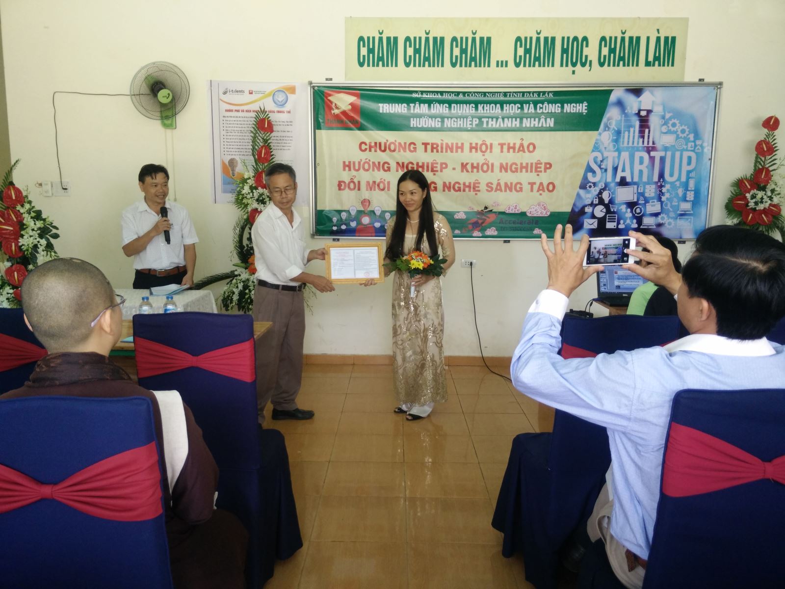 Đại diện sở Khoa học & Công nghệ tỉnh Đăk Lăk đọc quyết định và trao giấy chứng nhận hoạt động KHCN cho Trung tâm ứng dụng KH&CN hướng nghiệp Thành Nhân