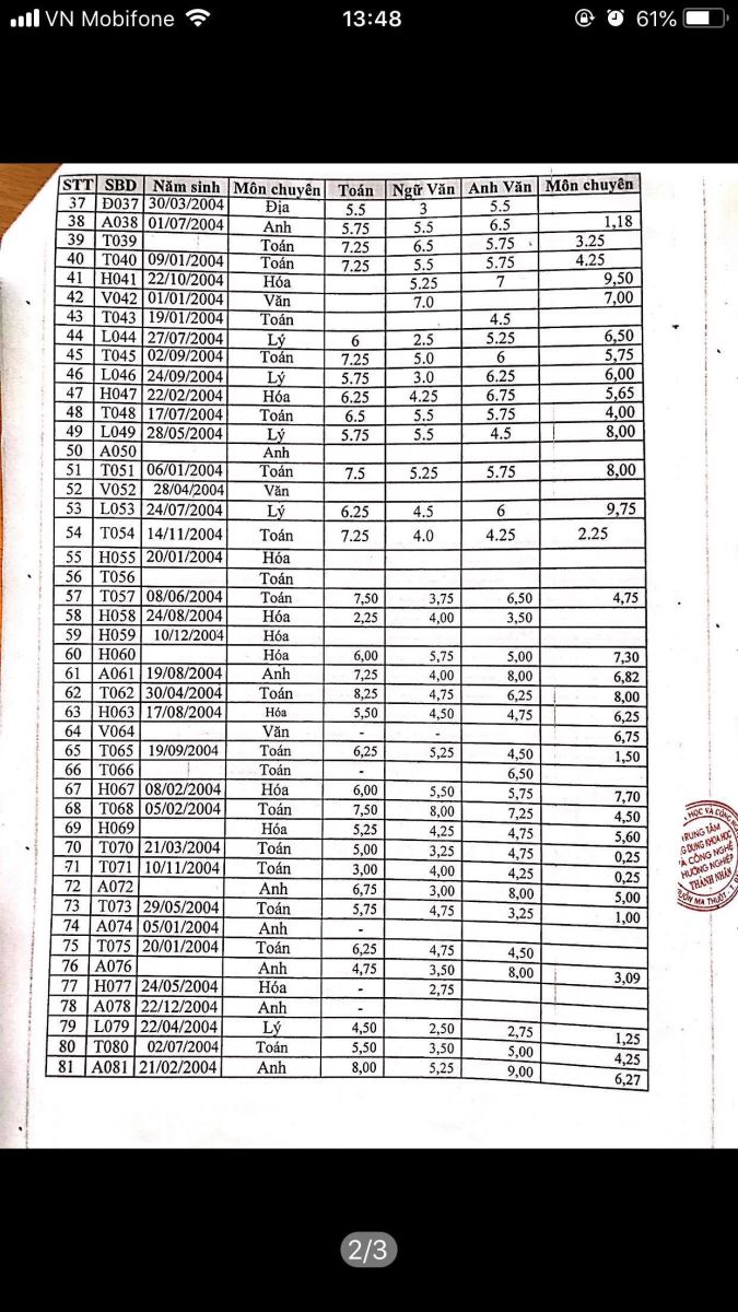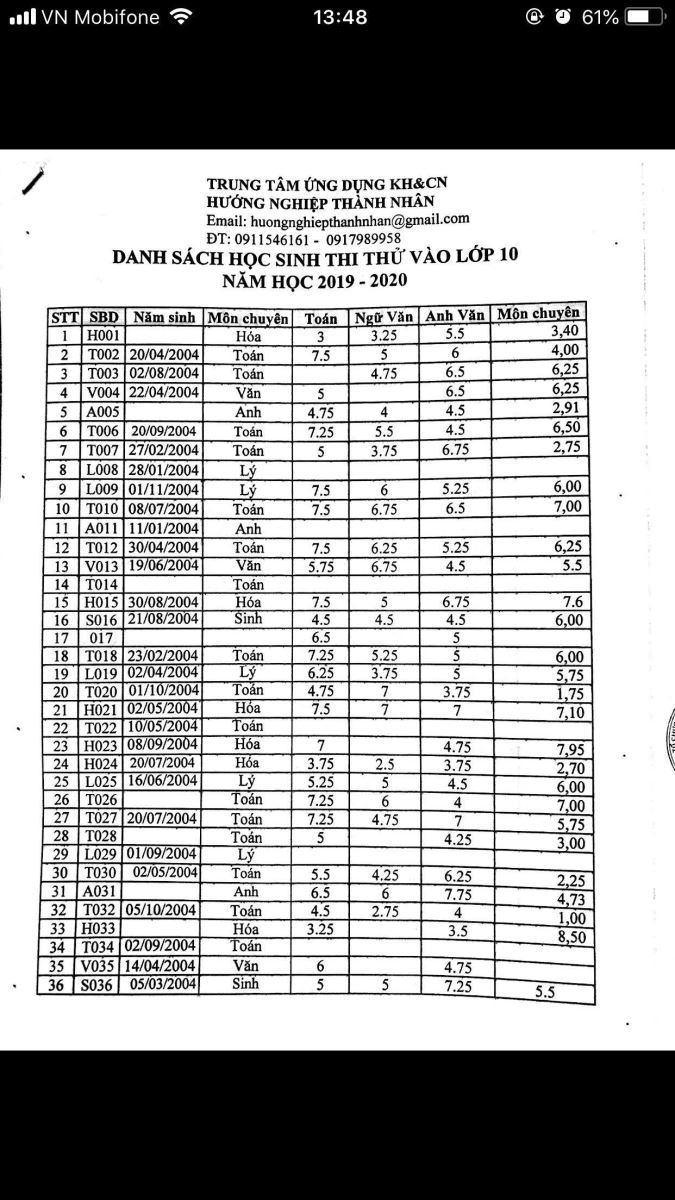 Trung tâm ứng dụng Khoa Học & Công Nghệ Hướng Nghiệp Thành Nhân xin thông báo kết quả thi thử của các bạn thử sinh trong đợt thi thử vào lớp 10 chuyên vừa qua tại đây.