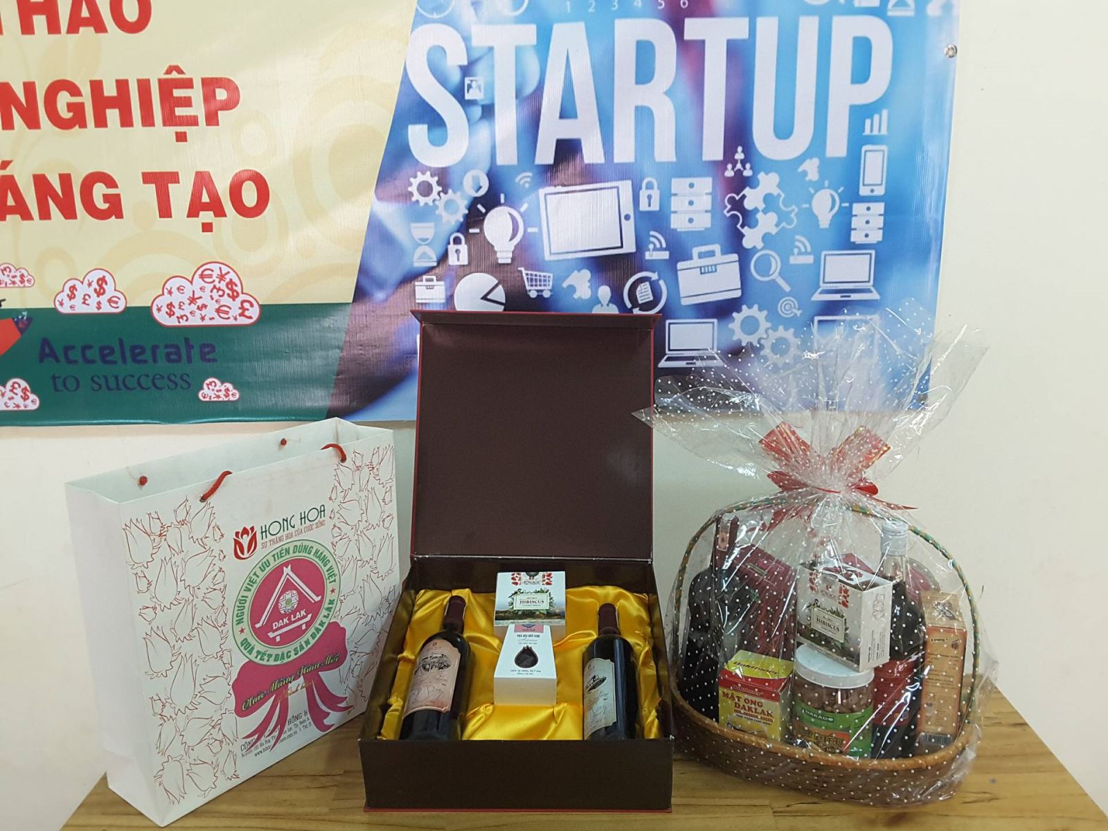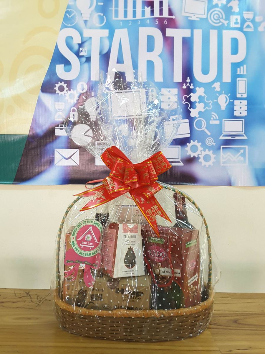 “Giỏ quà Tết đặc sản Đắklắk” được đóng gói từ những sản phẩm tiêu biểu của các doanh nghiệp được chứng nhận bởi Sở KH&CN tỉnh Đắklắk như Công ty TNHH Cà Phê An Thái, Công ty TNHH Hồng Hoa Đắklắk, Công ty CP Ong Mật, Công ty CP Kado Việt Nam, Công ty TNHH Ca Cao Nam Trường Sơn,… .Các sản phẩm trở nên phong phú hơn bao gồm rượu vang và mứt từ Hoa Bụp Giấm, cà phê, cacao, mật ong, hạt điều, macca, mật ong,…Ngoài ra mẫu mã và bao bì cũng đáp ứng được tiêu chí sang trọng, lịch sự, giá cả vừa tầm, và phù hợp với thị hiếu người tiêu dùng. Giá cả tham khảo ở mức 300.000-1.000.000đ/ gói quà.